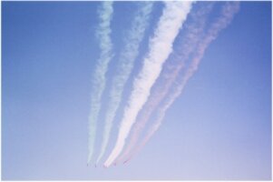 The 'Suryakirans' are the IAF's 9 aircraft Aerobatic team flying the indeginous HAL Kiran Mk.II.