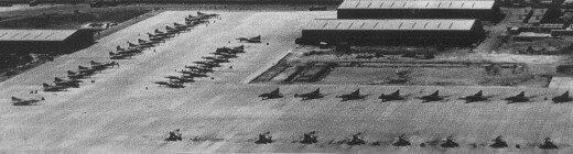 No less but 43 MiG-23MS and MiG-23BNs can be seen on this reconnaissance photograph of the Benina AB, near Benghazi, taken in 1981. (US DoD) |