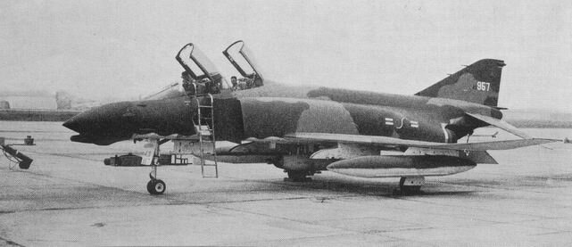 One of the first F-4Ds delivered to South Korea, 64-957, seen in 1969 at Taegu AB. (photo DoD) |