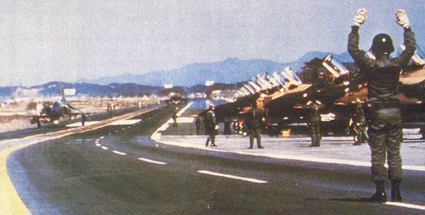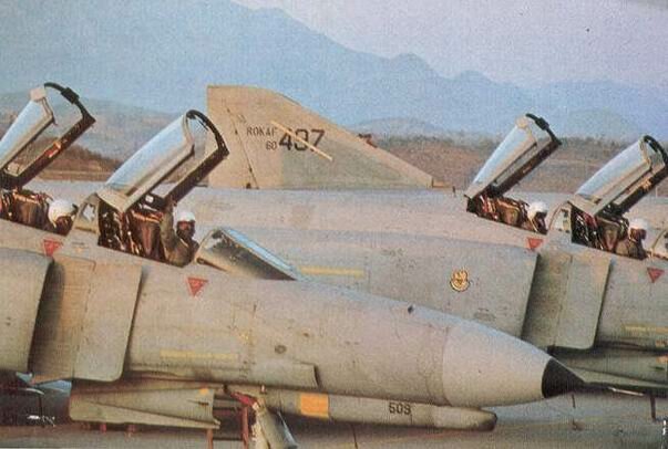Row of ROKAF F-4Ds and F-4Es, seen during exercise operations from a highway. (photo USAF) |