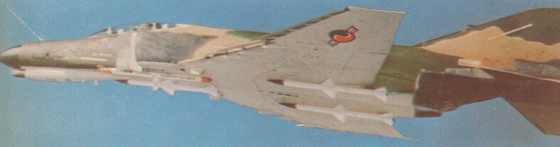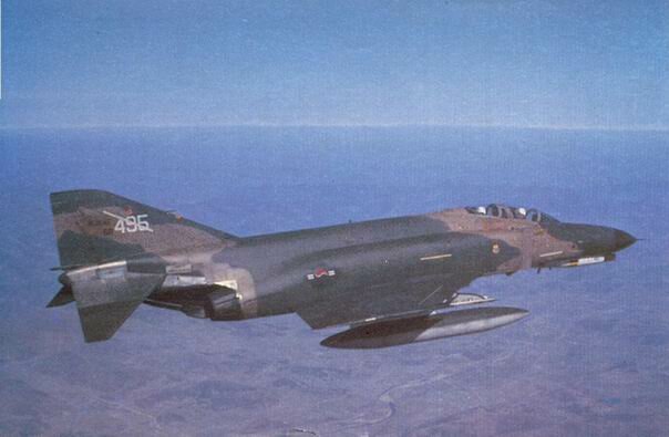 A "brand-new" ROKAF F-4E - obviously seen shortly after delivery from the USAF stock (note the crudely overpainted US-marking) seen over South Korea in 1969. (photo Robert F. Dorr) |