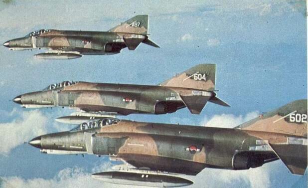 Trio of early ROKAF F-4Es seen in their old camo during the late 1960s or early 1970s. (via Jin Ho) |