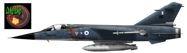 The Greek F.1CGs entered service with the 342 Mira, which at the time was still using the F-102A Delta Dart as an all-weather interceptor. The last Delta Daggers in PA service would be retired in 1977 when all 40 F.1CGs were delivered. Unfortunately the PA Staff did not buy any of the French AA missiles to equip the new fighters and so these had to be armed with US-supplied AIM-9Js instead. In 1984 the KETA (Center for Research and Aviation Technology) stared to develop the wiring for the 2 outboard underwing pylons, in order to make F.1Cgs able to carry 4 AAM instead of 2. This happened with Dassault's help by 1985 and ever since the PA Mirage tooth four AIM-9P-2.