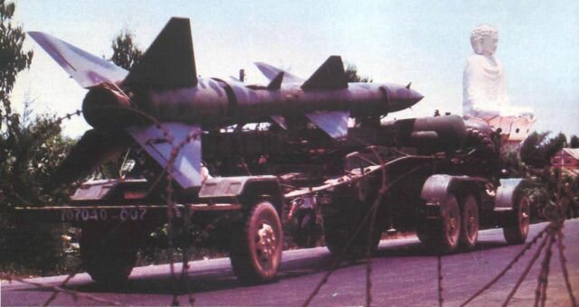 Norht Vietnamese SA-2 on transporter, as seen in 1974. (Tom Cooper collection) |