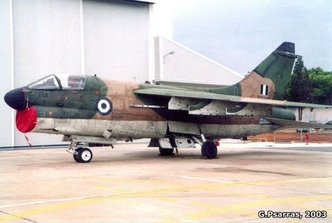 A-7E "160002" was parked outside the hangar, as a reminder of the Corsair days. From 1975 Souda was the base of the Greek T/A-7H fleet before switching to the F-16 Block 52+'s in 2003. |