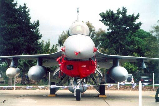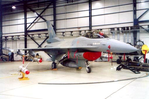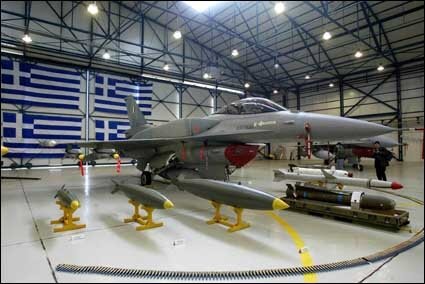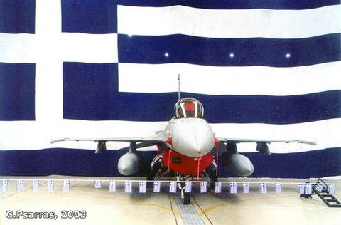 F-16D "614" was at the center of the hangar in front of the Greek flag. |