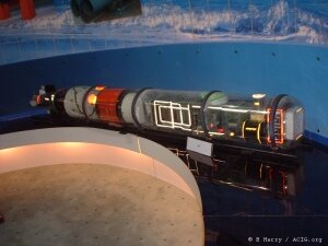 Cutaway of the Advanced Light Weight Torpedo (ALWT) developed by DRDO for both ship-borne and air-borne carriage. It can attack targets at a depth of 540 m, has a maximum speed of 33 knots and has a dynamic frontal sealing system for noise reduction and higher reliability.