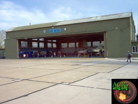 | The hangar of 331 Mira in the south side of the apron with two Mirage 2000EGMs inside.. |